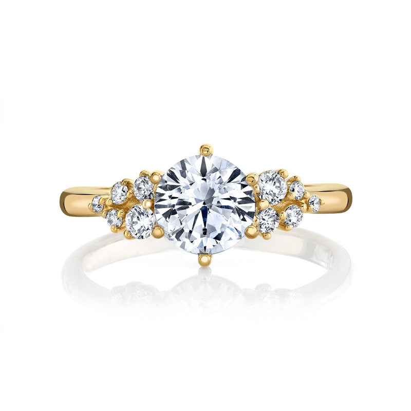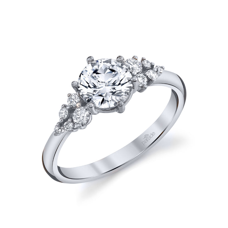A brilliant center stone floats atop a 6-prong crown, accentuated by a variety of smaller diamonds on each side in this stunning design from the Hemera Bridal Collection. Stone Information: 10-RD 0.18. Available in Platinum, as well as 18K White, Yellow or Rose Gold.