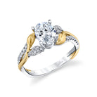 Fresh from the Lyria vineyard, this new design features a twist of sunny gold and brilliant diamonds. Stone Information: 24-RD 0.10. Available in Platinum, as well as 18K White, Yellow or Rose Gold.