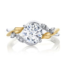 Lyria Leaves 2-Tone Diamond Ring. Stone Information: 06-RD 0.10. Available in Platinum, as well as 18K White, Yellow or Rose Gold.