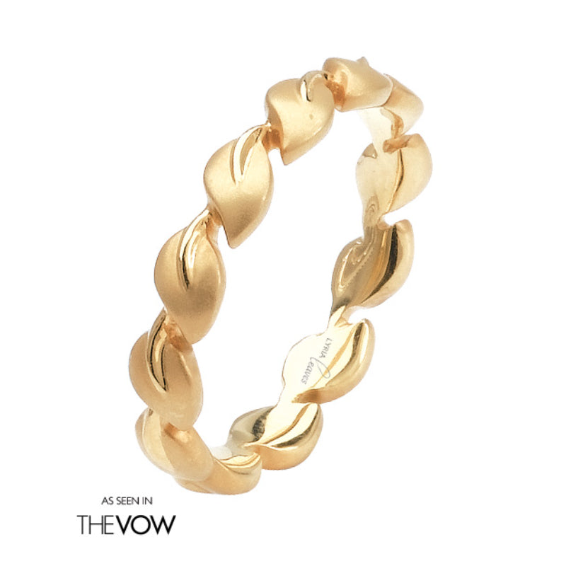 Parade Design's original Lyria Leaves wedding band was featured in the THE VOW, starring Rachel McAdams! Satin finished cascading leaves are crafted in the finest 18K yellow gold. Stone Information: No Diamonds. Available in Platinum, as well as 18K White, Yellow or Rose Gold.