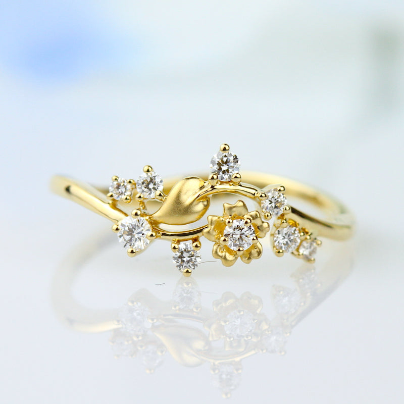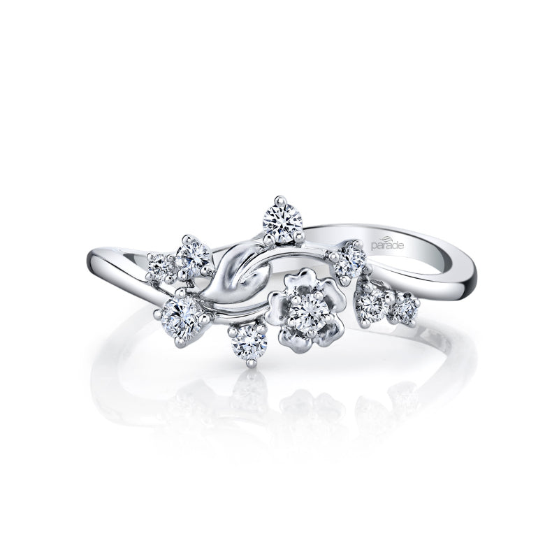 Lyria Leaves Diamond Band. Stone Information: 09-RD 0.23. Available in Platinum, as well as 18K White, Yellow or Rose Gold.